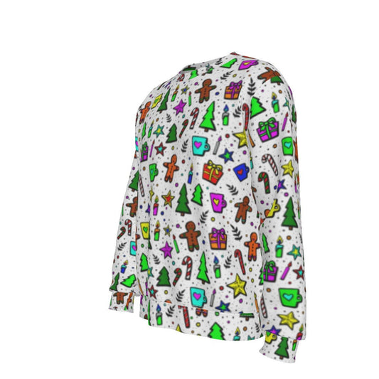 Men's Fleece Christmas Sweatshirt- Bright Doodle