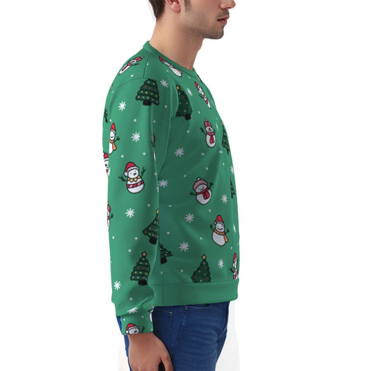 Men's Fleece Christmas Sweatshirt- Green Snowman