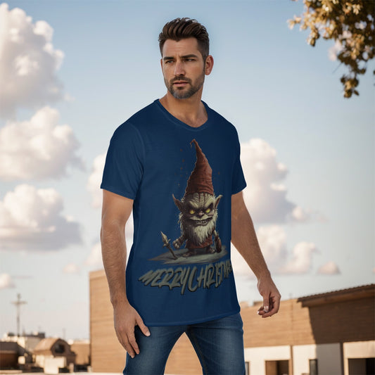 Mens Short Sleeve Christmas Tee - Dark Blue - Dark Elf