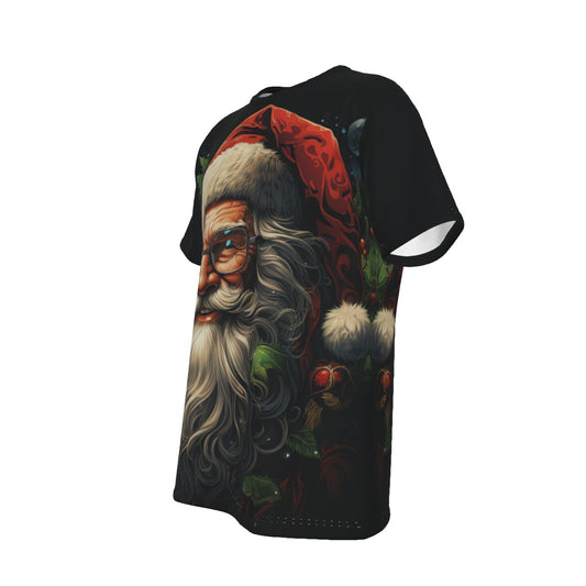 Mens Short Sleeve Christmas Tee - Front and Back - 64 bit Santa