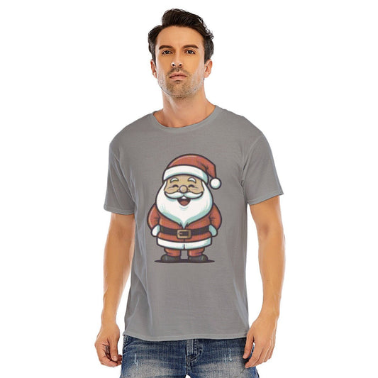 Mens Short Sleeve Christmas Tee - Grey Santa