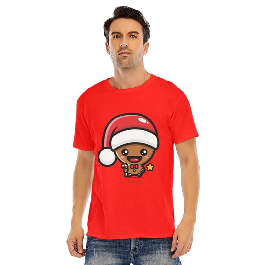 Mens Short Sleeve Christmas Tee - Kawaii Gingerbread Man