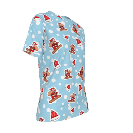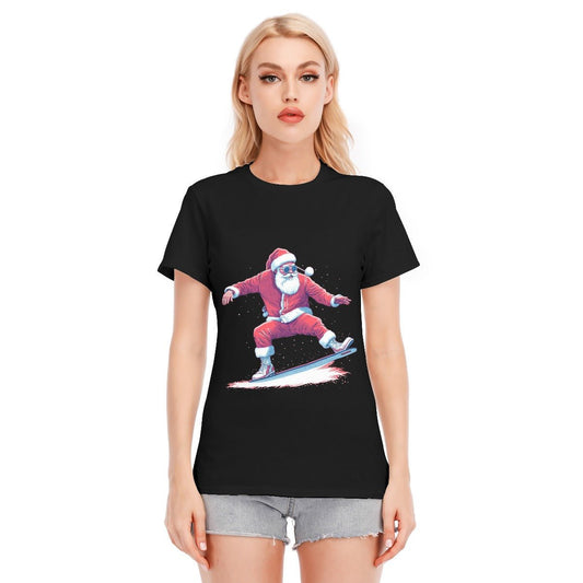 Women's Short Sleeve Christmas Tee - Santa Snowboarding