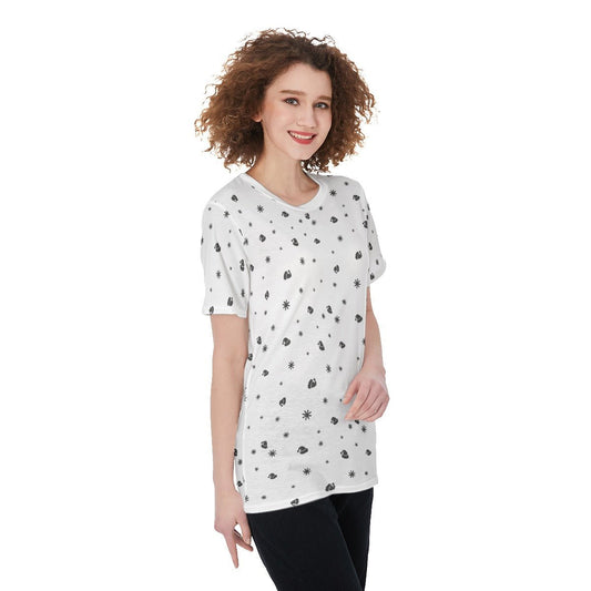 Women's Short Sleeve Christmas Tee - Snowflakes and Hats