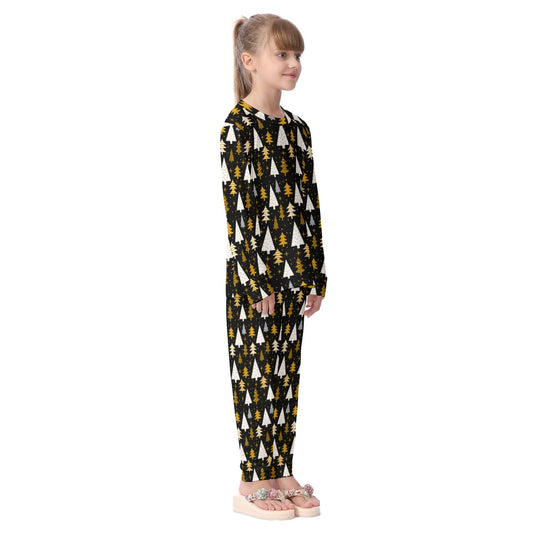 Kid's Christmas Pyjamas - Black with Gold Trees
