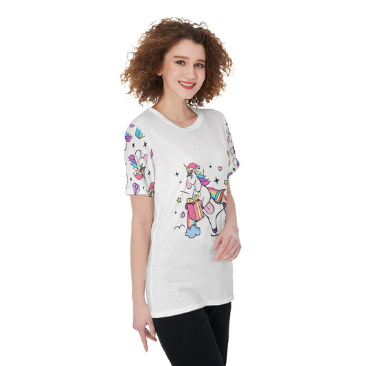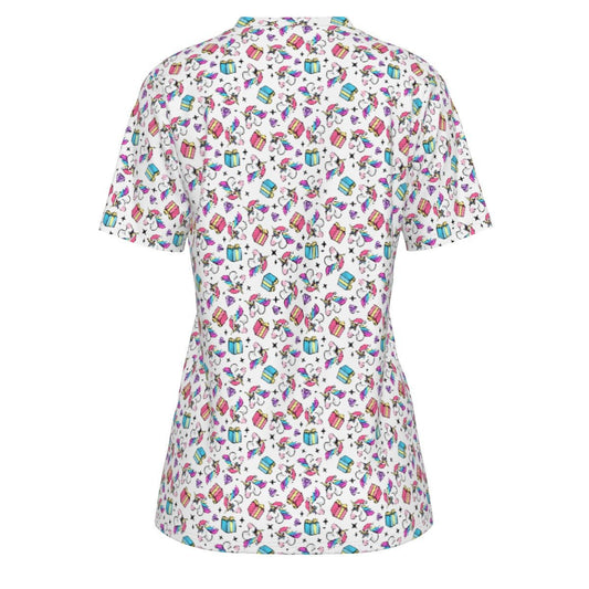 Women's Short Sleeve Christmas Tee - Unicorn Pattern