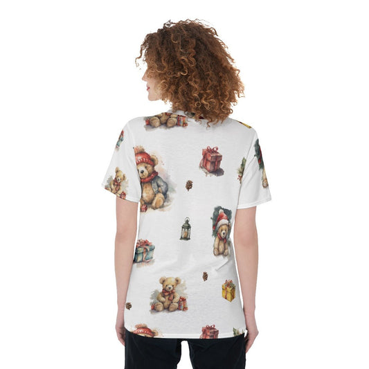 Women's Short Sleeve Christmas Tee - Watercolour Teddies