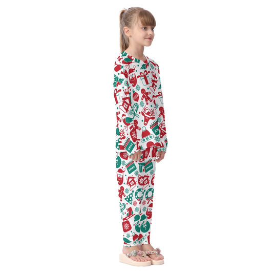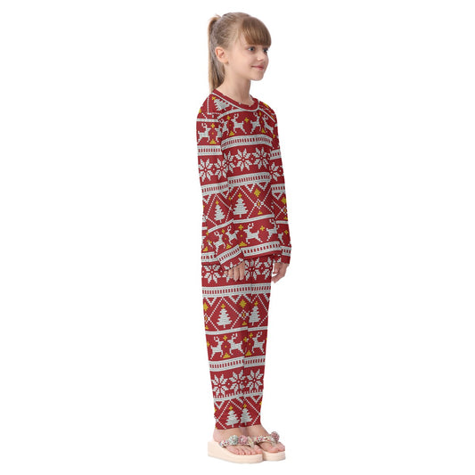 Kid's Christmas Pyjamas - Red Stiched Pattern