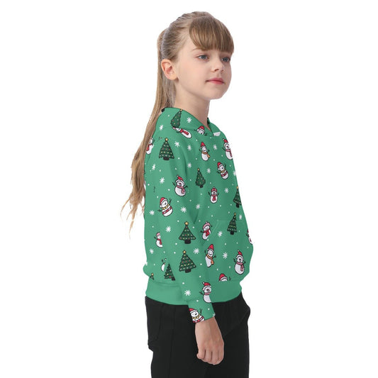 Kid's Fleece Christmas Hoodie- Green Snowman
