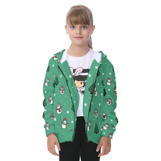Kid's Fleece Christmas Zip Hoodie- Green Snowman