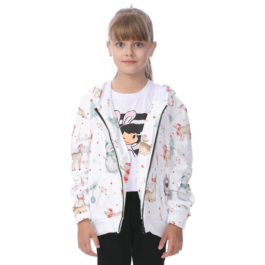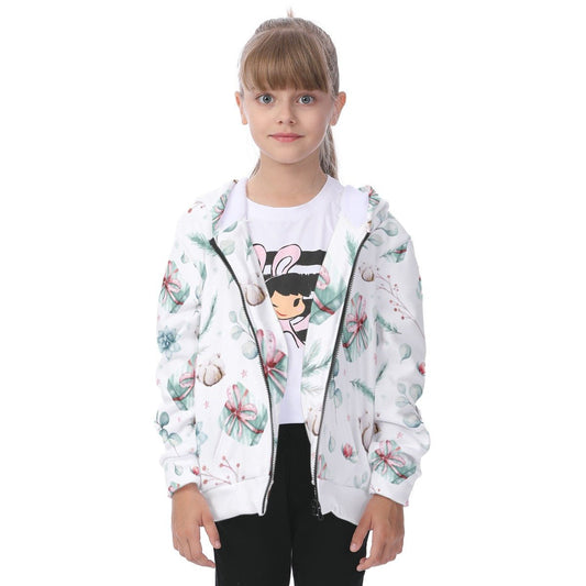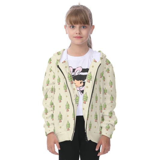 Kid's Fleece Zip Christmas Hoodie - Natural Pattern