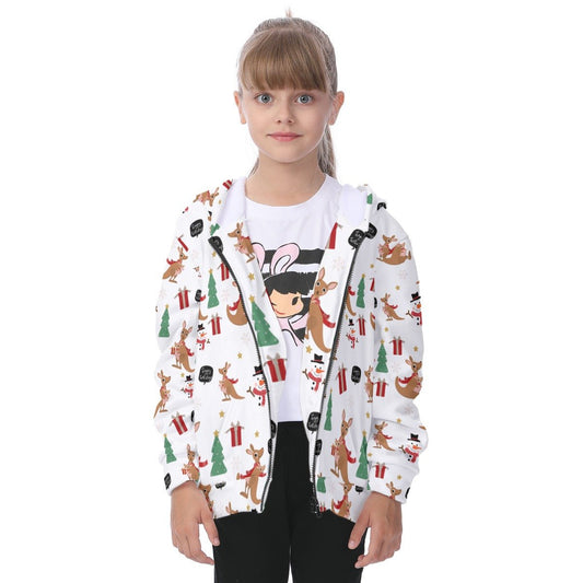 Kid's Fleece Zip Christmas Hoodie - Kangaroos