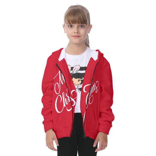 Kid's Fleece Zip Christmas Hoodie - Merry Christmas - Red