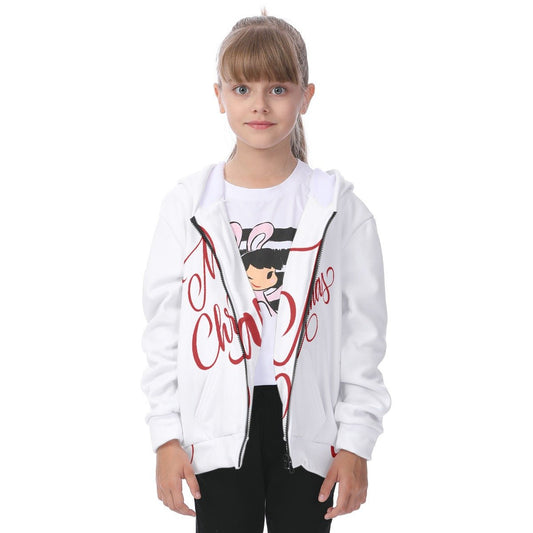 Kid's Fleece Zip Christmas Hoodie - Merry Christmas - White