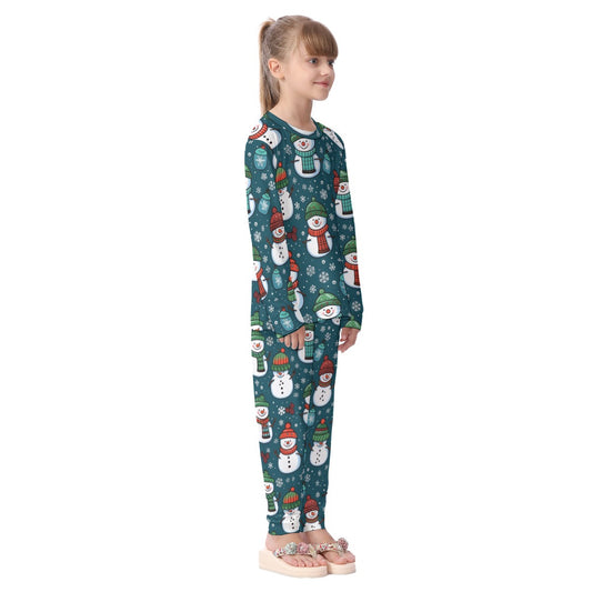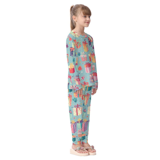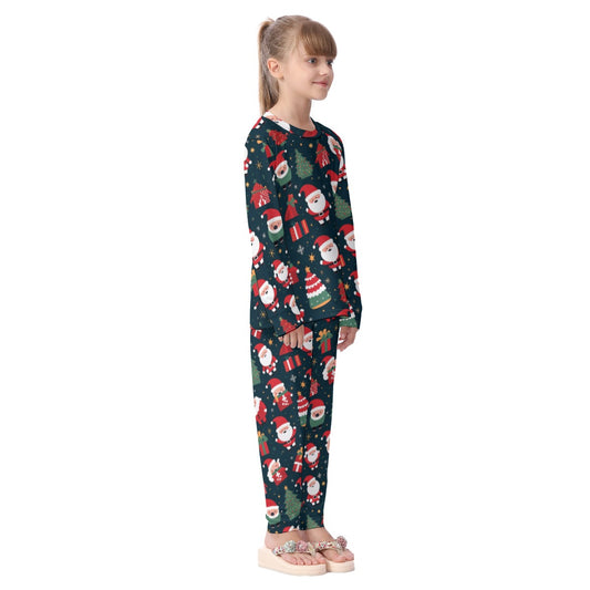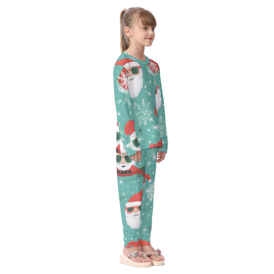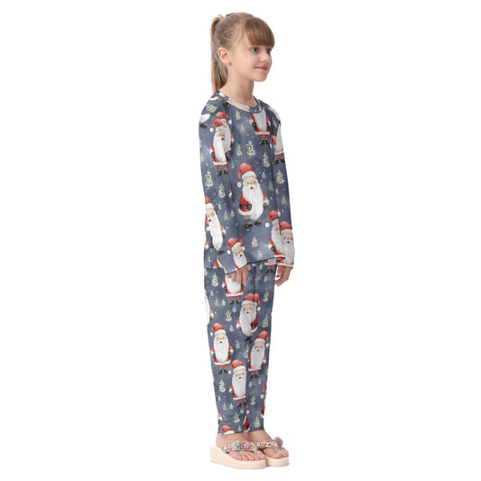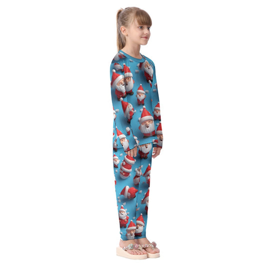 Kids Christmas Pyjama Set - Blue 3d Santas