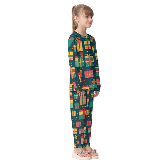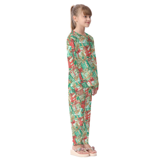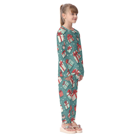 Kids Cute Christmas Pyjama Set - Watercolour Green