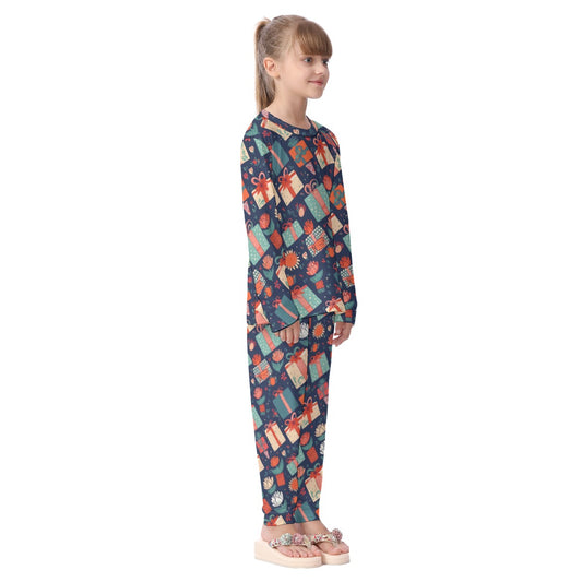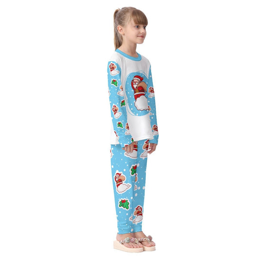 Kids Cute Christmas Pyjama Set - Watercolour Blue