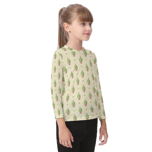 Kid's Long Sleeve Christmas T-shirt - 16-Bit Christmas Trees
