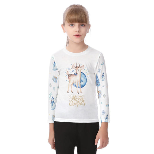 Kid's Long Sleeve Christmas T-shirt - Cute Reindeer