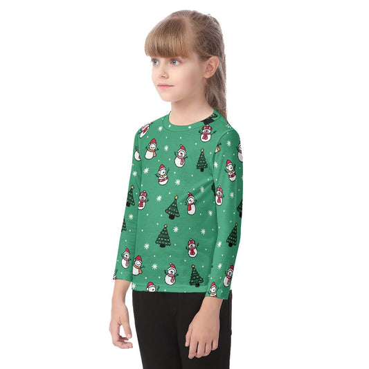 Kid's Long Sleeve Christmas T-shirt - Green Snowman