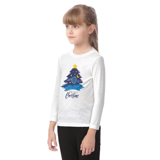 Kid's Long Sleeve Christmas T-shirt - Merry Christmas - Blue Tree
