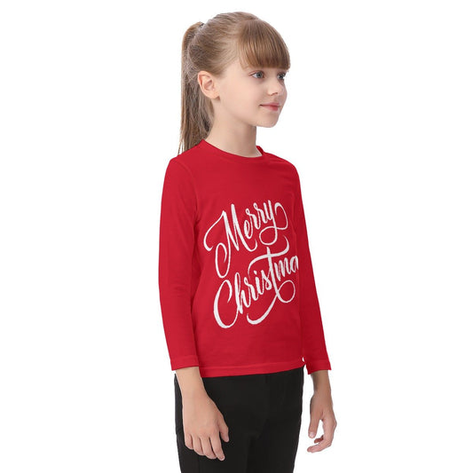 Kid's Long Sleeve Christmas T-shirt - Merry Christmas - Red