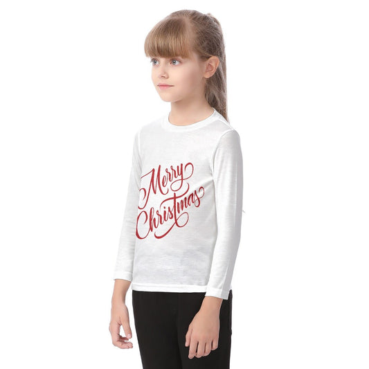 Kid's Long Sleeve Christmas T-shirt - Merry Christmas - White