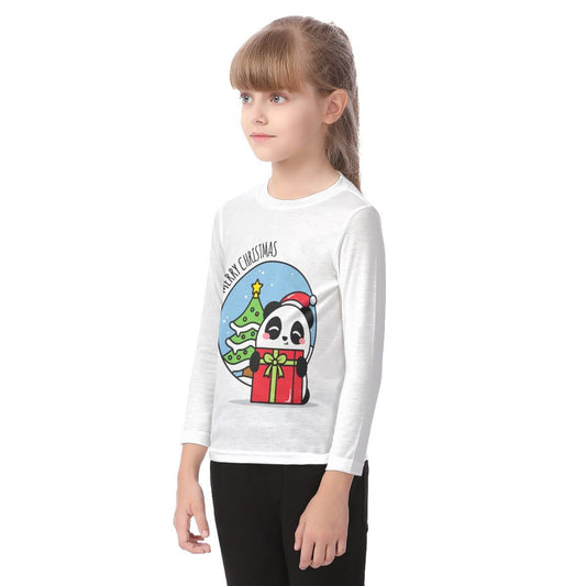 Kid's Long Sleeve Christmas T-shirt - Merry Panda