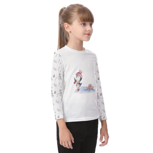 Kid's Long Sleeve Christmas T-shirt - Skating Penguin