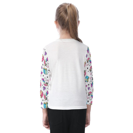 Kid's Long Sleeve Christmas T-shirt - Unicorn with Present