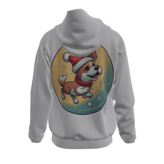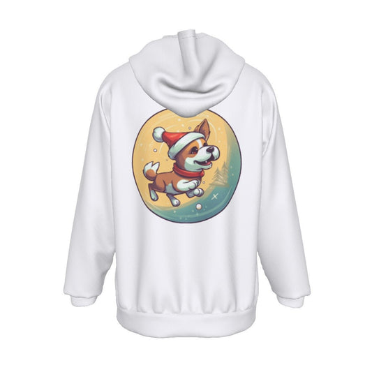 Men's Fleece Zip Christmas Hoodie - Front and Back - Dog and Moon