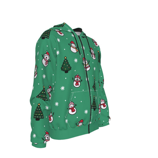 Men's Fleece Christmas Zip Hoodie- Green Snowman