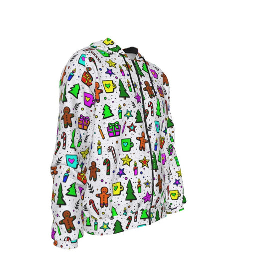 Men's Fleece Zip Christmas Hoodie - Bright Doodle