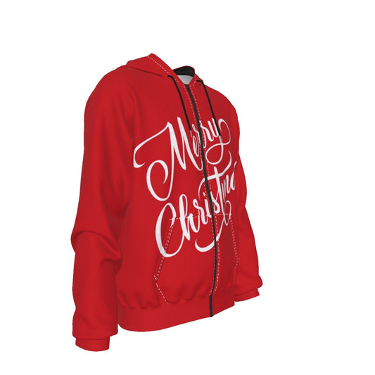 Men's Fleece Zip Christmas Hoodie - Merry Christmas - Red
