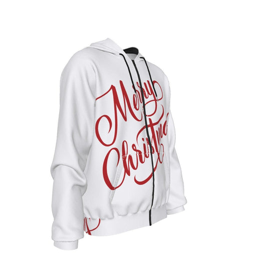 Men's Fleece Zip Christmas Hoodie - Merry Christmas - White