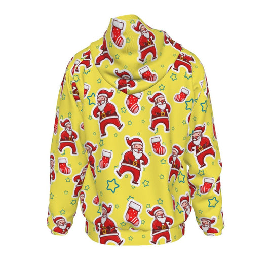 Men's Fleece Zip Christmas Hoodie - Santa and Stars