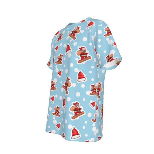Mens Short Sleeve Christmas Tee - Santa Snowboarding