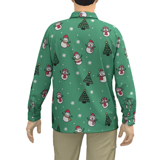 Men's Collar Christmas Shirt - Green Snowman