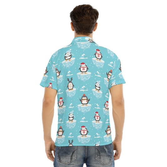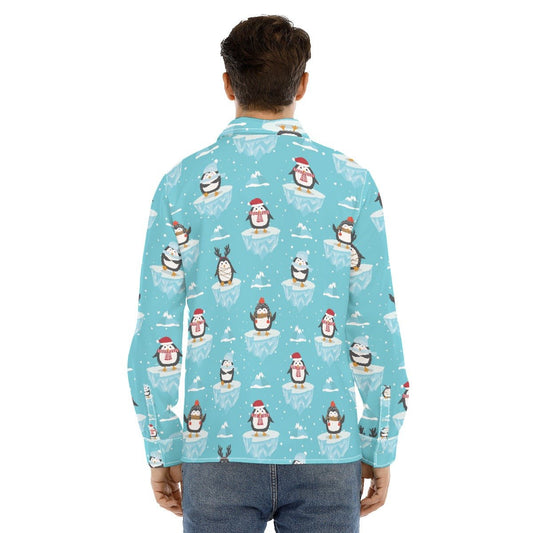 Men's Collar Christmas Shirt - Icy Penguins