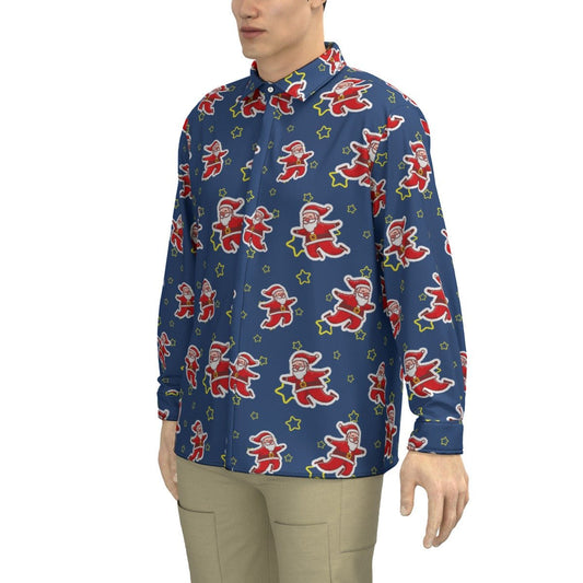 Men's Collar Christmas Shirt - Santa and Stars