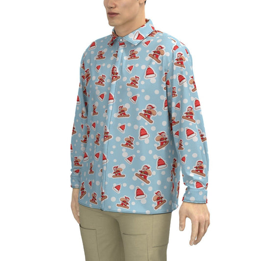 Men's Collar Christmas Shirt - Santa Snowboarding