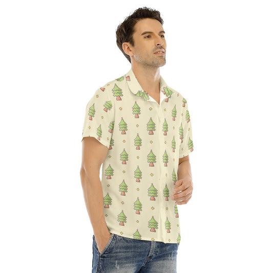 Men's Collar Short Sleeve Christmas Shirt - 16-Bit Christmas Trees