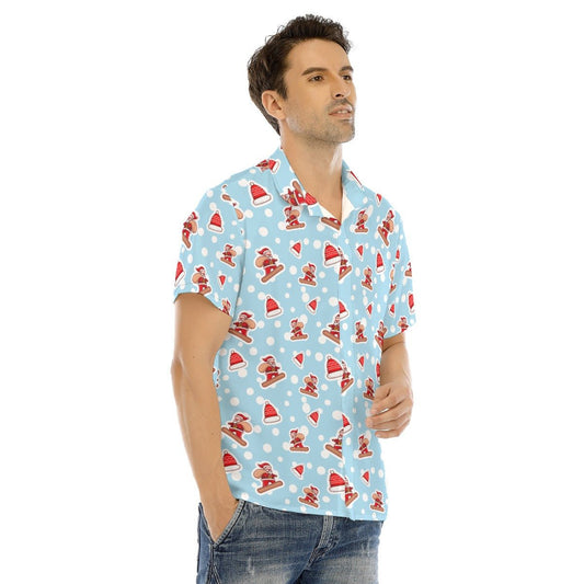 Men's Collar Short Sleeve Christmas Shirt - Santa Snowboarding