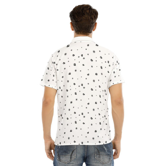 Men's Collar Short Sleeve Christmas Shirt - Snowflakes and Hats