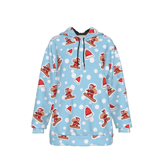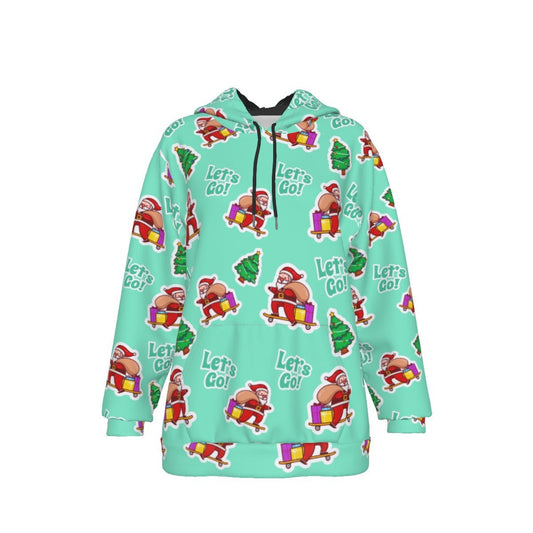 Women's Fleece Christmas Hoodie - Santa Snowboarding