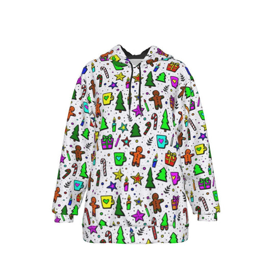 Women's Fleece Christmas Hoodie - Bright Doodle