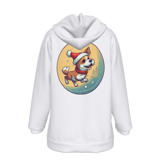 Women's Fleece Christmas Hoodie - Front and Back - Dog and Moon