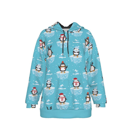 Women's Fleece Christmas Hoodie- Icy Penguins