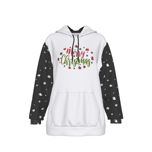Women's Fleece Christmas Hoodie - Merry Christmas - Black Sleeves