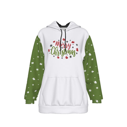 Women's Fleece Christmas Hoodie - Merry Christmas - Green Sleeves